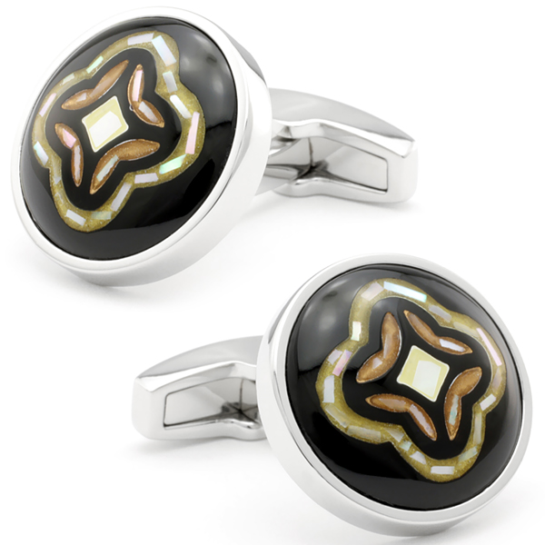 The ancient look of the tribal mandala is brought up-to-date with high-gloss black Onyx and Mother of Pearl tile inlay, demonstrated with the Mosaic Inlaid Mandala Cufflinks. The unique pattern gets its chic flair from high-sheen silvertone detailing and streamlined hardware. The conventional fixture makes these stylish mosaic cufflinks easy to put on, but also secure to wear. The sparkle of shimmering Mother of Pearl is a sharp contrast to the popular Black Onyx stone, and the delightful motif will please fine jewelry wearers of all ages. The façade also touts a striking nucleus of ivory- which makes an innovative focal point for the cufflink and a captivating curiosity to admirers.