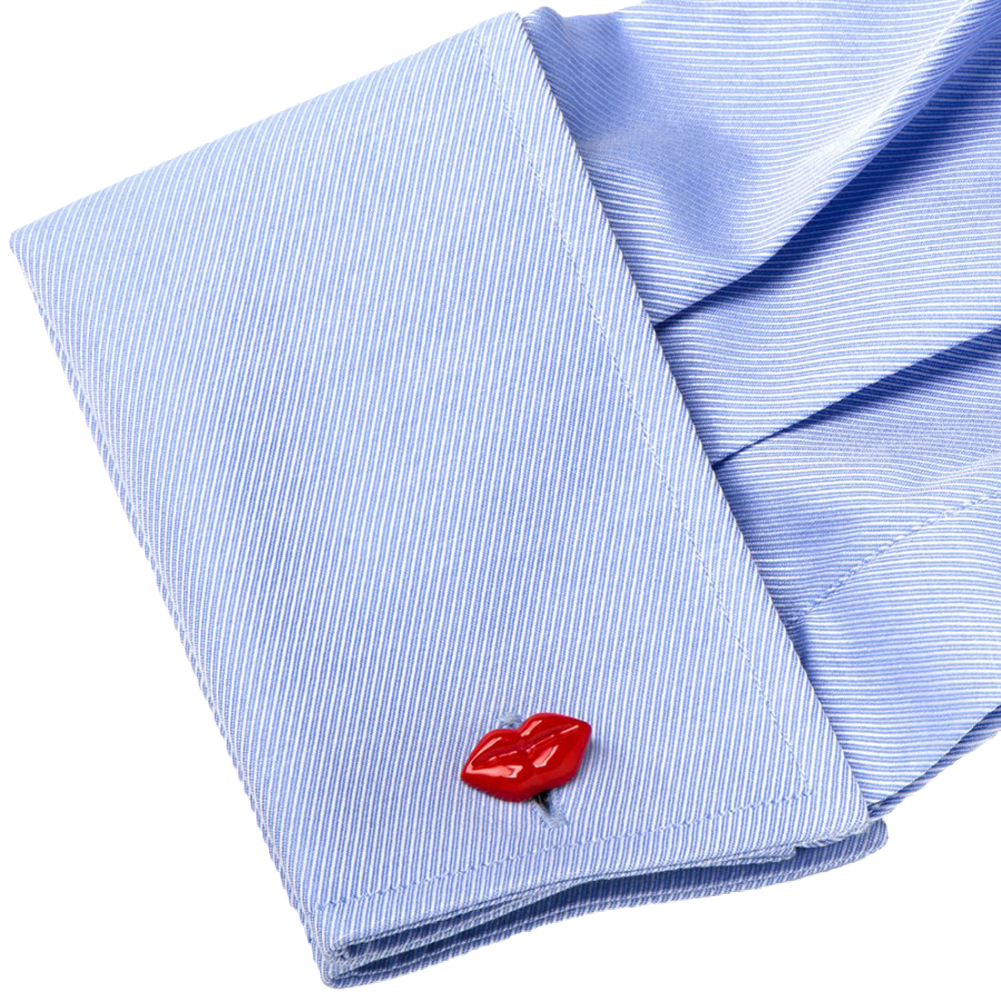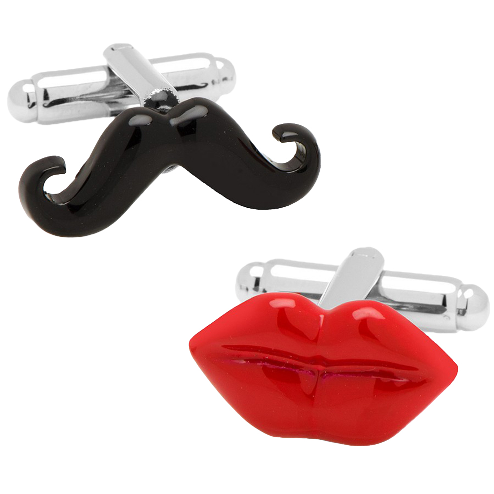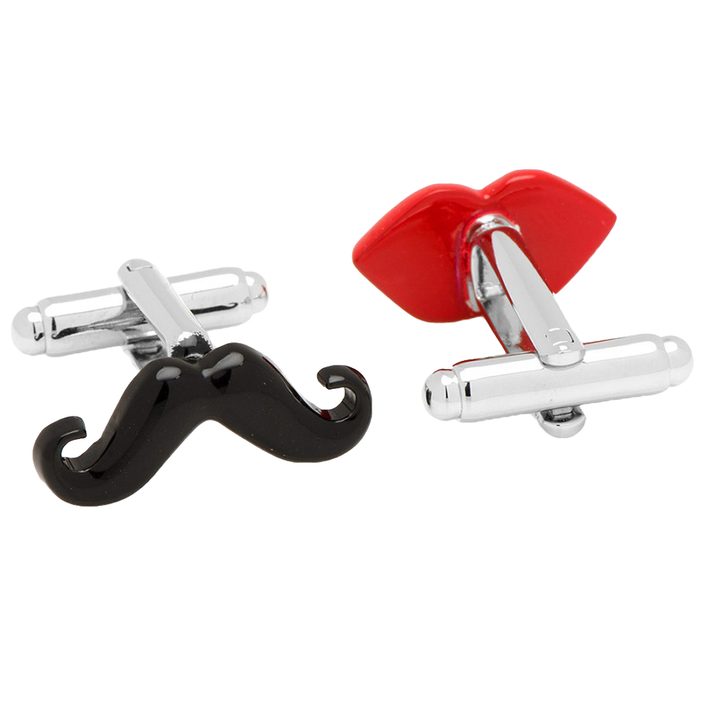Moustache cufflinks approximately 7/8" 3/8". Lips cufflinks approximately 7/8" x 1/2". base metal and enamel. Set includes one moustache and one lips cufflink. Bullet back closure.