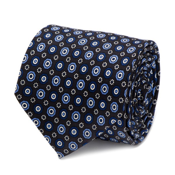 Navy Circle Patterned Silk Tie