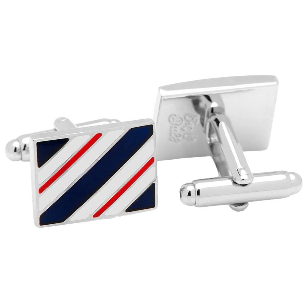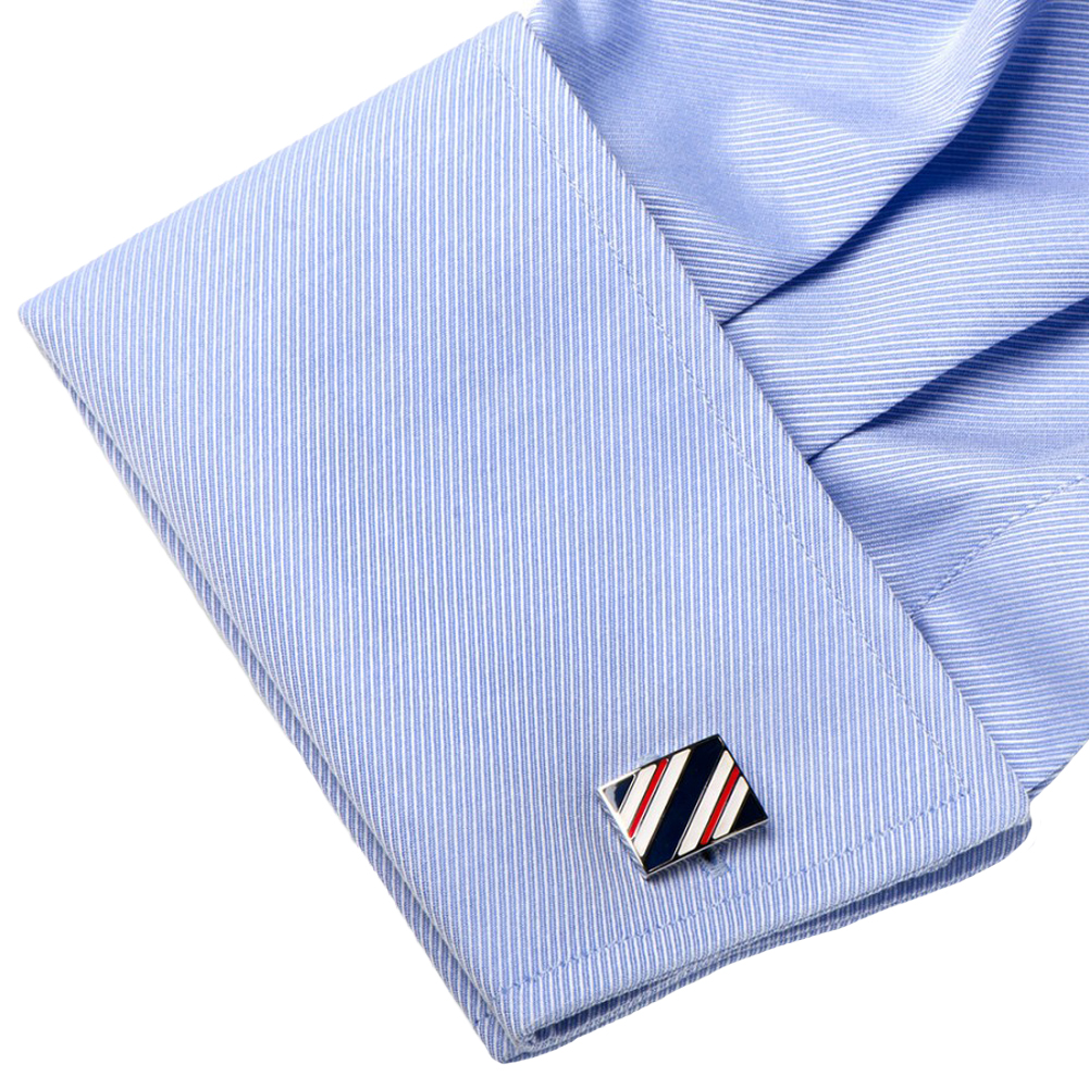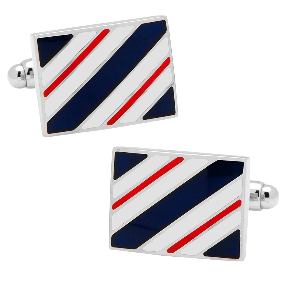 Navy and Red Rectangle Repp Stripe Cufflinks