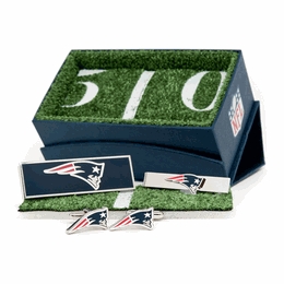 The perfect gift for the sports lover in your life, the New England Patriots Gift Set features a pair of officially licensed cufflinks, a money clip and team tie bar. Ideal for the fashionable fan, support your team in the most sophisticated of ways. Officially licensed by the National Football League. Officially NFL licensed New England Patriots gift set featuring a pair of cufflinks, tie bar and matching money clip. Ideal for the sports fan in your life. Constructed of enamel over silver plating.