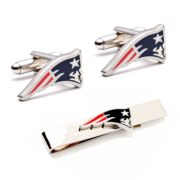 New England Patriots Cufflinks and Tie Bar Gift Set Officially licensed Gift Set featuring a pair of cufflinks and matching tie bar. New England Patriots Modern Logo Cufflinks. High Quality New England Patriots CufflinksThe ultimate gift combination for the executive sports fan. By combining the officially licensed New England Patriots Cufflinks with a matching tie bar, we have eliminated the worry about if the gift you give will be used.