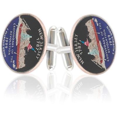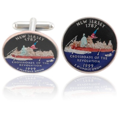 These New Jersey Coin cufflinks depict a repetition of Leutze's "Washington Crossing the Delaware" with the phrase "Crossroads of the Revolution." These are an ideal addition to you cufflinks collection. These are a perfect addition to you cufflinks collection.Bottom of Form
