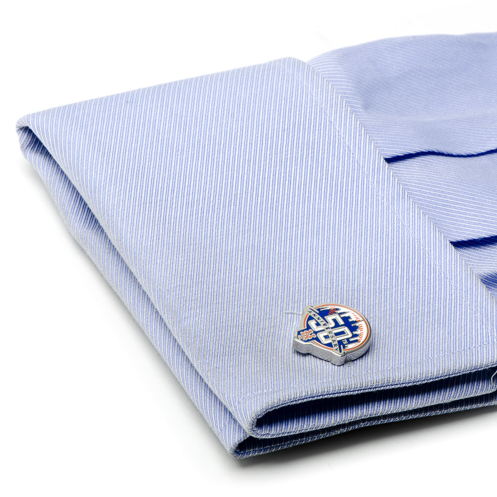 Give your favorite Mets fan the New York Mets Cufflinks! Officially licensed MLB Cufflink, Approximately 5/8" x 3/4" Silver plated and enamel with Bullet back closure.