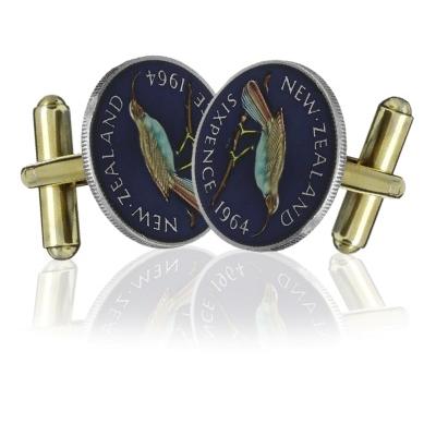 The bird featured in the 6 pence coin of New Zealand is hand painted to make elegant coin cufflinks. Now you can add a splash of colorful and playful fun to the sleeves of your French cuffs shirt or blouse, when you sport these remarkable cufflinks.