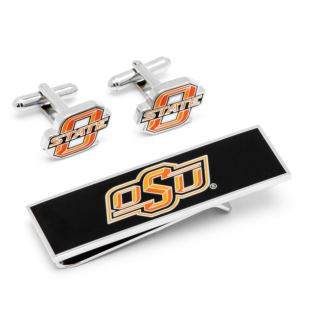 Gift set includes pair of cufflinks and one. money clip. Silver plated and enamel. Officially licensed by NCAA.