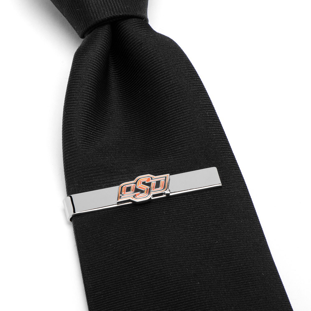 Oklahoma State Cowboys Tie Bar. Sport your ties in style by adding the Oklahoma State Cowboys Tie Bar. A shiny, Silver plated sliding tie bar makes it easy to declare your Cowboys allegiance front and center. N0-Risk Guarantee! If for any reason you are not satisfied with your purchase, simply return them for a full Money Back Guarantee! I will refund your full purchase price to you, plus pay for return shipping.Flaunt your team spirit with this officially licensed NCAA tie bar.Whether you wear it to the office, a date or a networking event, this tie bar sporting the Seminoles logo will be a definite conversation-starter. It Approximately measures as 2" x 3/8".