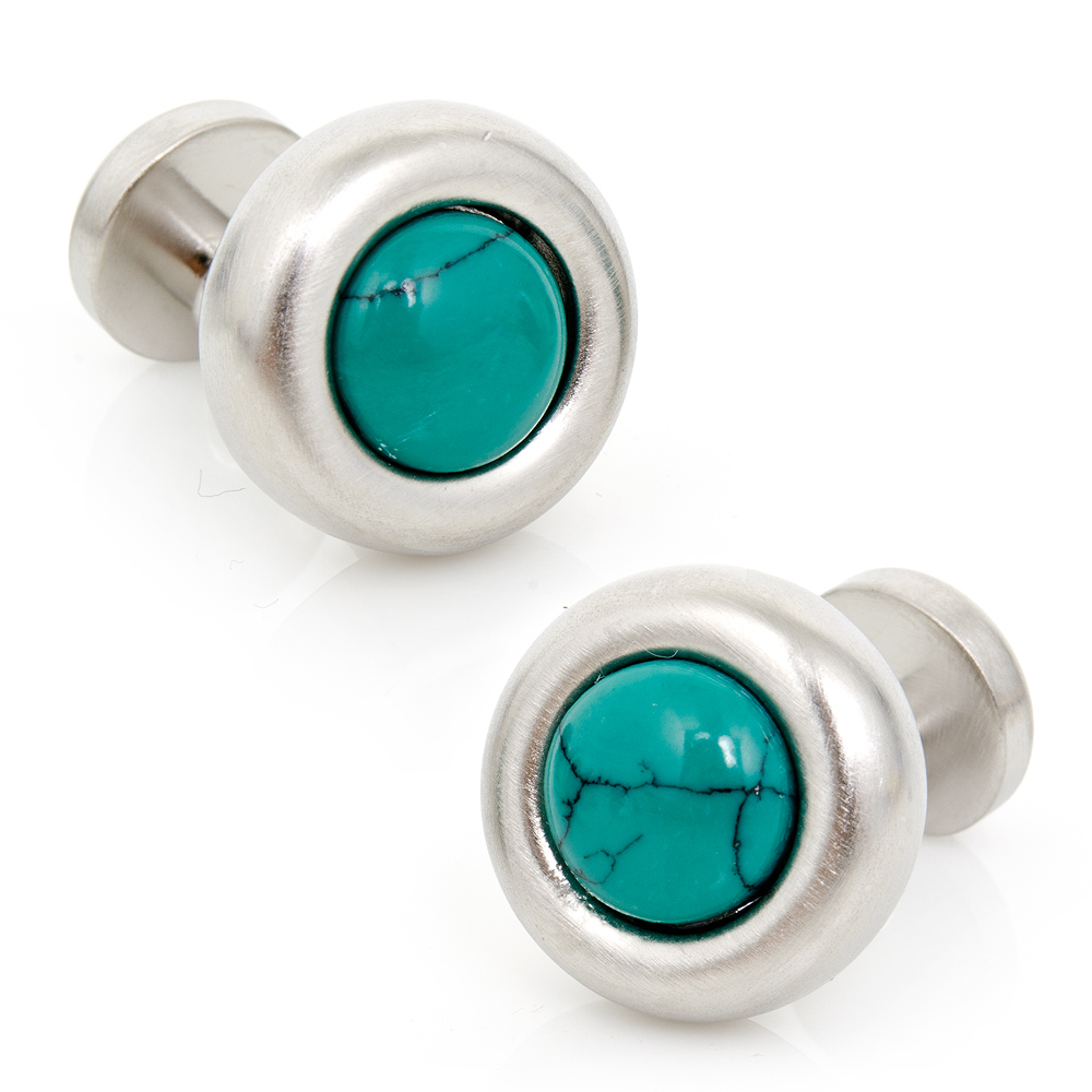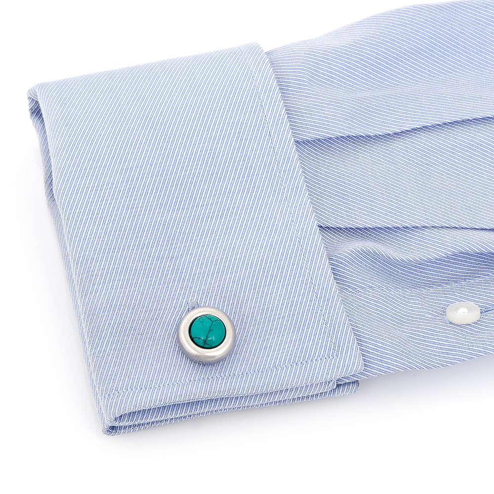 Highly stylized, an inset Turquoise stone radiates through the silver stage. Versatile and eye catching, the cufflinks are an exceptional way to show off your fashionable side. Cufflinks by Ox and Bull Trading Co.