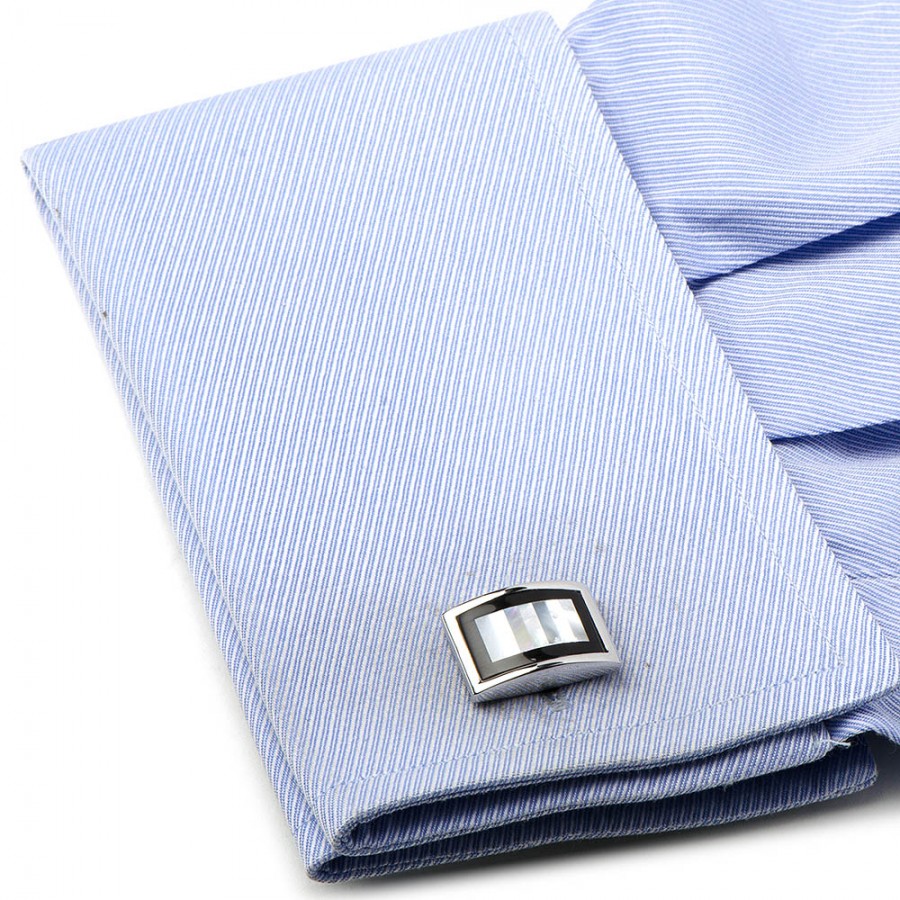 Add a touch of style with the Onyx and Mother of Pearl Key Cufflinks. They are constructed of silver plated metal