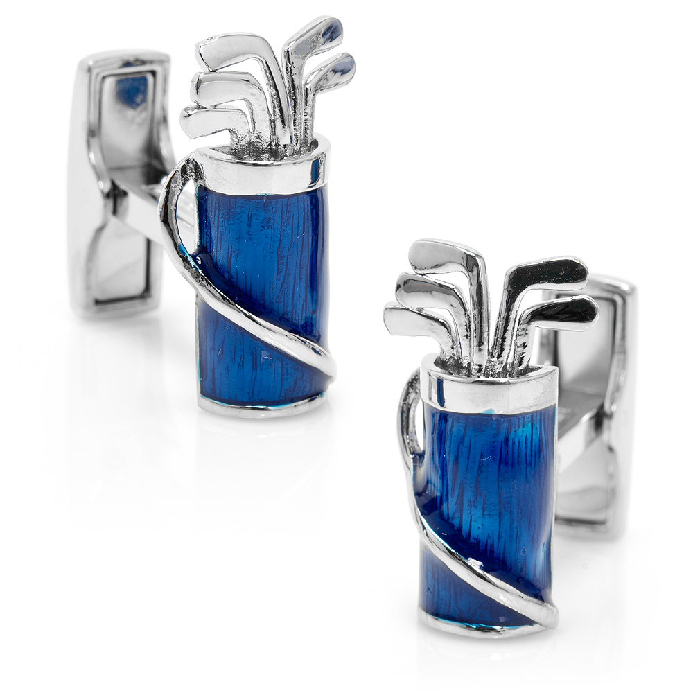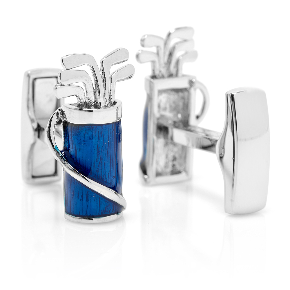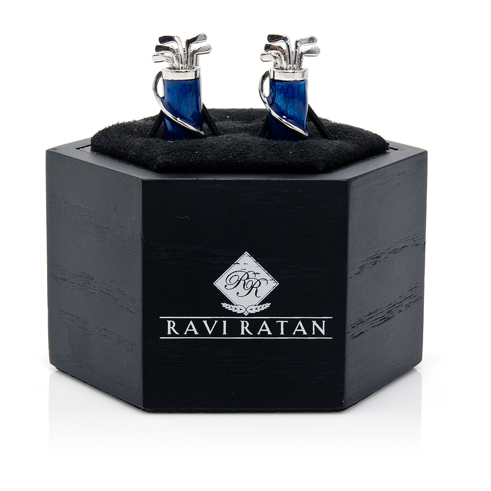 Beautifully Crafted Ravi Ratan Golf Bag Cufflinks Plated In Palladium And Accented In Enamel. Wonderful Detailing, Ideal For A Golf Lover. Show Your Love Of The Links In Style.