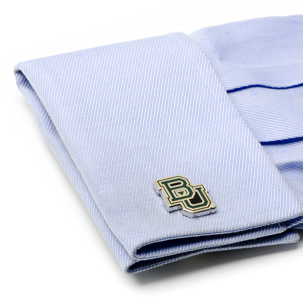 Palladium Baylor University Bears Cufflinks! Featuring a bold graphic with a Fixed logo backing, these cufflinks are a perfect gift for a true fan. These Cufflinks are the perfect accessory for the well dressed man. Cufflink features Enamel with palladium plated silver tone accent. Back side features the NCAA logo. Approximately3/4" x 3/4" in diameter. Officially licensed NCAA product.