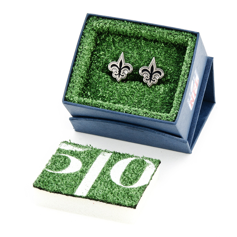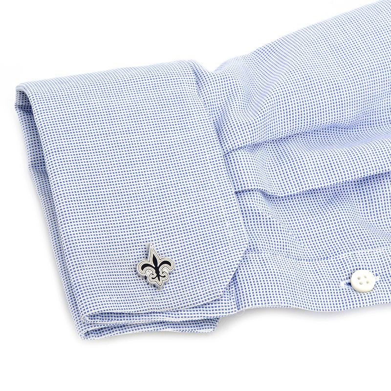 When the basics aren't enough for the Who Dat Nation, they come and get the Palladium Edition Saints Cufflinks. Expertly constructed on a fixed backing, the Cuff links are double sided and made with an ultra luxurious platinum finish and enamel accent. Back side features the NFL logo. Officially licensed NFL. Approximately 5/8" x 5/8" with One piece, fixed backing.
