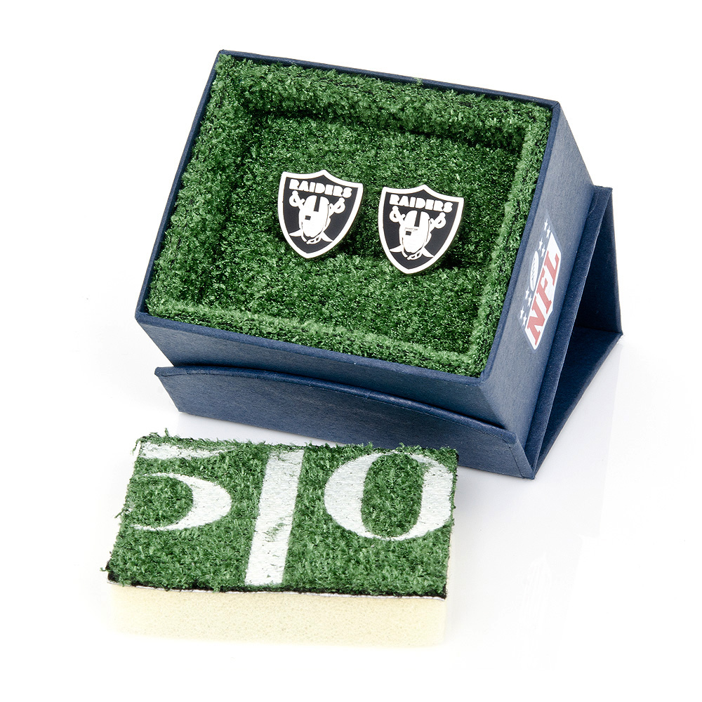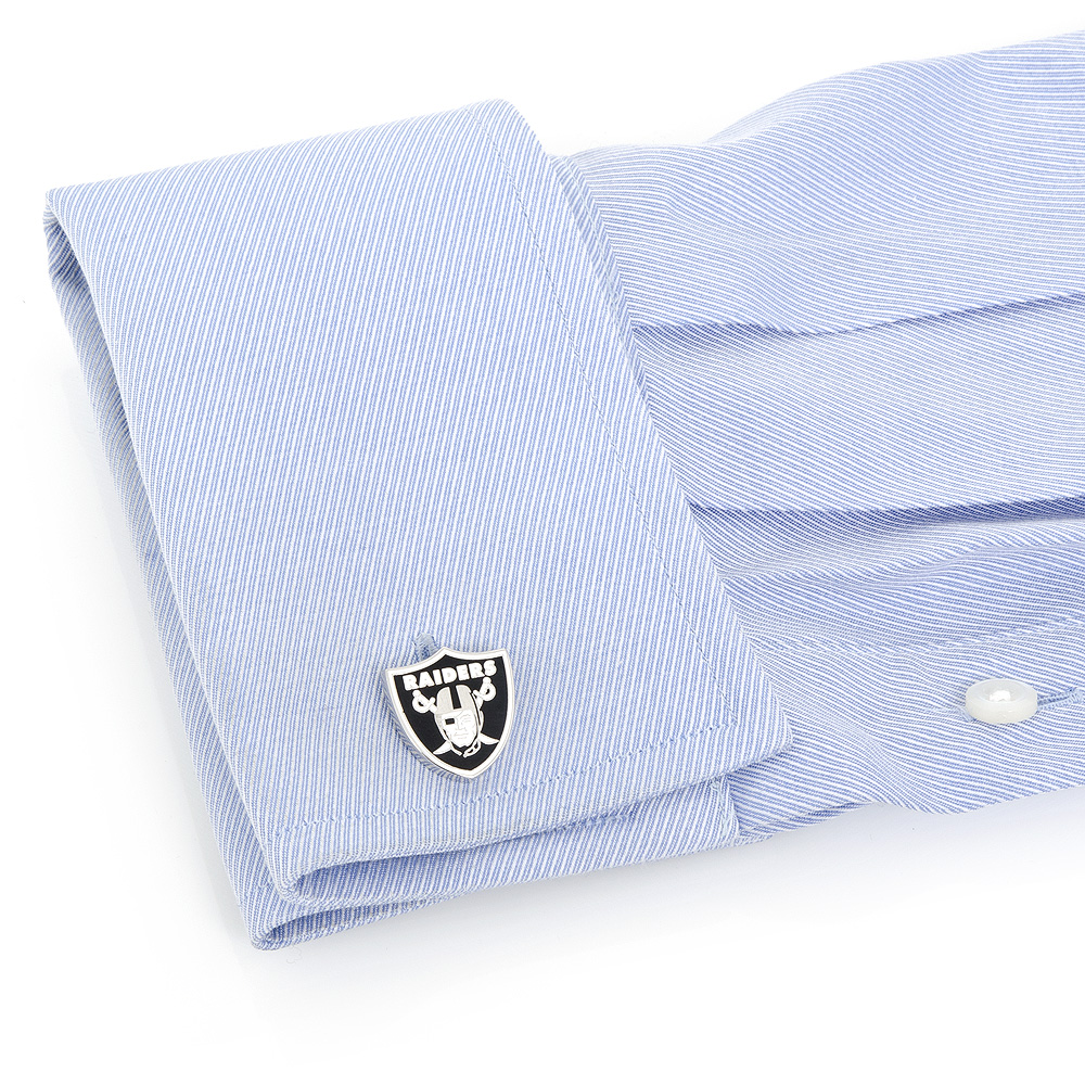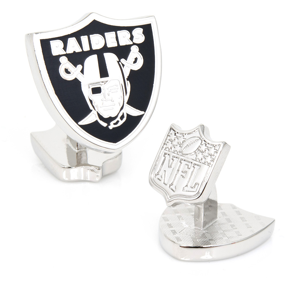 A Star In Our Elite, Palladium Edition, The Oakland Raiders Logo Is Expertly Constructed On A Fixed Backing Cufflink. With The Ultimate Attention To Detail, The Cufflinks Are Double Sided And Made With An Ultra Luxurious Platinum Finish And Enamel Accent. The Face Of The Cufflinks Feature The Beloved Logo Of Da Raiders, While The Backing Features The Iconic NFL Shield. The Ultimate In Fan Style. Officially Licensed NFL Cufflinks.