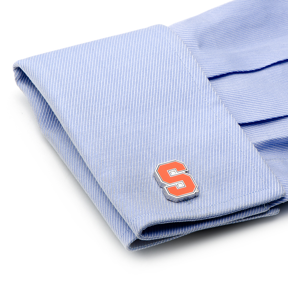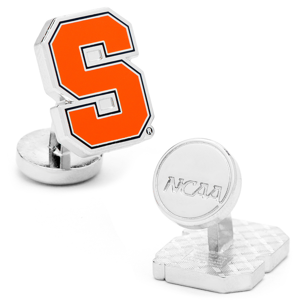 Part of our elite, Palladium Edition, The Palladium Syracuse University logo is expertly constructed on a fixed backing cufflink. With the ultimate attention to detail, the cufflinks are double sided and made with an ultra luxurious palladium finish and enamel accent. The face of the cufflinks feature the beloved logo of the Orangemen, while the back side features the iconic NCAA logo. Officially licensed NCAA Cufflinks.
