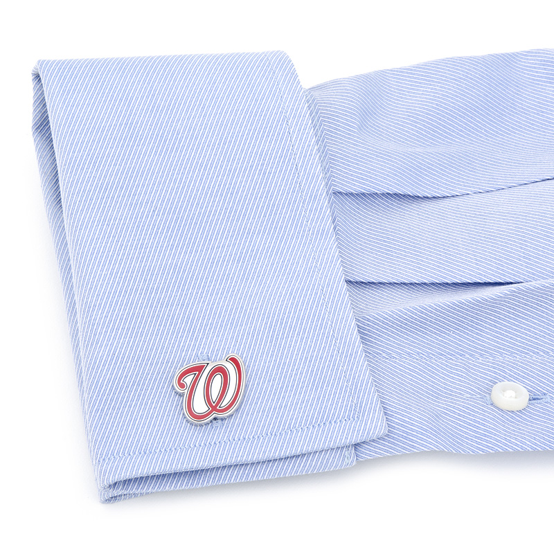 Part of our elite, Palladium Edition, the Washington Nationals logo is expertly constructed on a fixed backing cufflink. With the ultimate attention to detail, the cufflinks are double sided and made with an ultra luxurious palladium finish and enamel accent. The face of the cufflinks feature the beloved logo of the Nationals, while the back side features the iconic MLB logo. Officially licensed MLB cufflinks.