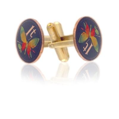 Butterflies are the best known invertebrate group in New Guinea and are represented by about 735 species. The 1 Toea coin of New Guinea has butterfly design. Based on this design, these charming coin cufflinks show the brightly colored butterfly. The yellow, green and orange combination on the butterfly’s wings adds a splash of color to your formal outfits.