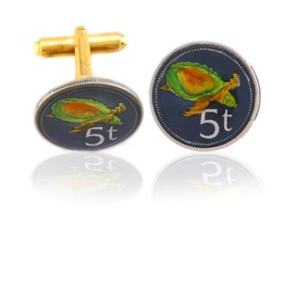 New Guinea is the second largest Island located near Australia and has a vast amount of breath takingly beautiful wildlife. The turtles alone are represented in New Guinea by thirteen described species. These turtle designed hand painted coin cufflinks do justice to the colorful natural life. Wear these dashing coin cufflinks to add sophisticated style to your formal attire.