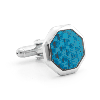 This pair of persian blue cufflinks is one way to enhance any attire in a simple and classic way; the color lends a fresh and surreal accent to any cuffs for the man who wants to display fine jewelry unlike all the rest. The octagonal-shape and woven texture set a rich and classic tone for this jewelry item, yet the rich blue hue is something special and different. The blue textured cufflinks have an oceanic flair in the shimmering persian blue of the face, set in silver-tone hardware that create a complimentary pairing. These cufflinks are stunning in both their color combination, as well as in the attention paid to the detailing- from the intricate woven face to the quality fixtures of the settings. This is a pair of formidable and elegant cufflinks deserving of the man who knows what he wants and is appreciative of fine jewelry or apparel. There are many occasions suited to this pair of illuminating blue cufflinks, and this pair also make an excellent choice for giving and gifting. These are distinguished and distinct, and will be cherished by those wearing them.