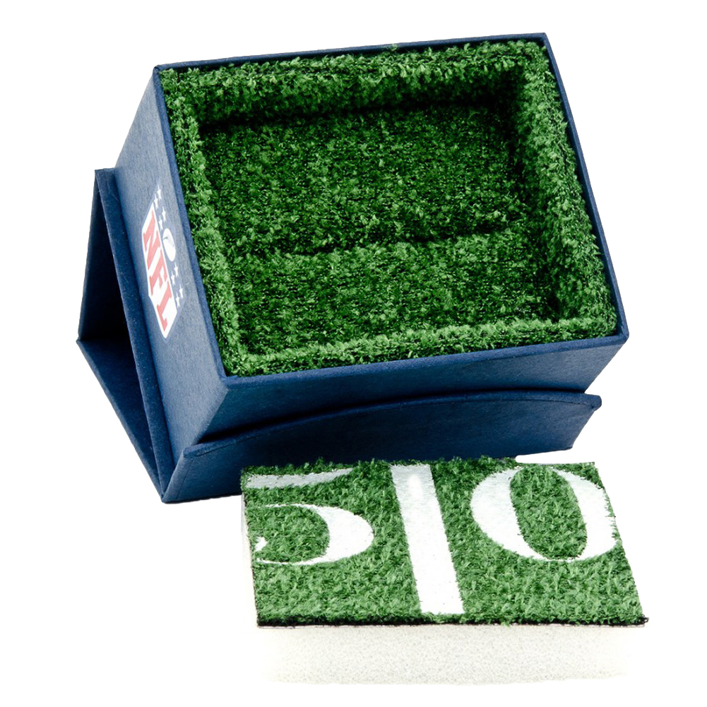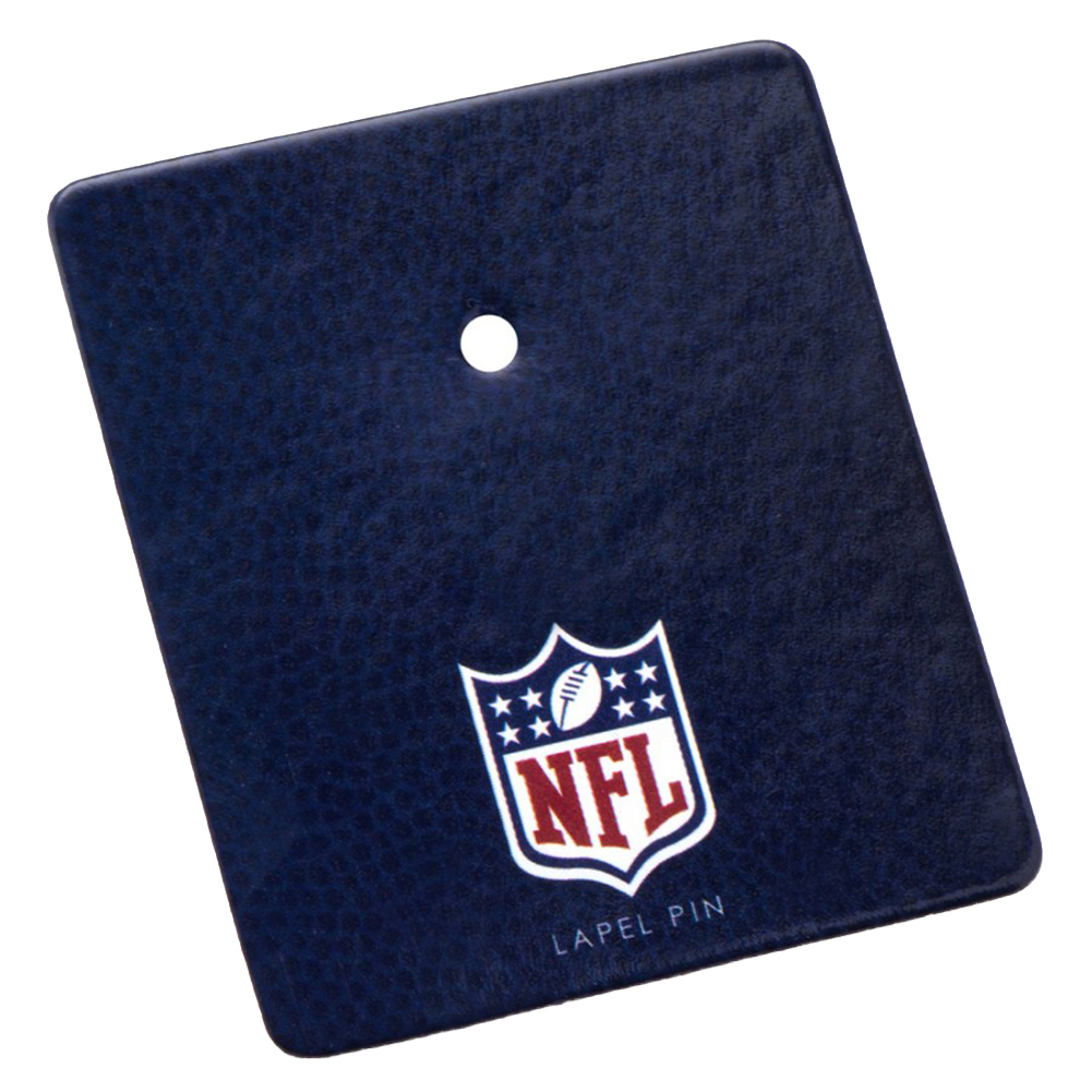 Approximately 3/4" x 1/2". Nickel base metal and enamel. Clutch back closure. Officially licensed by the NFL