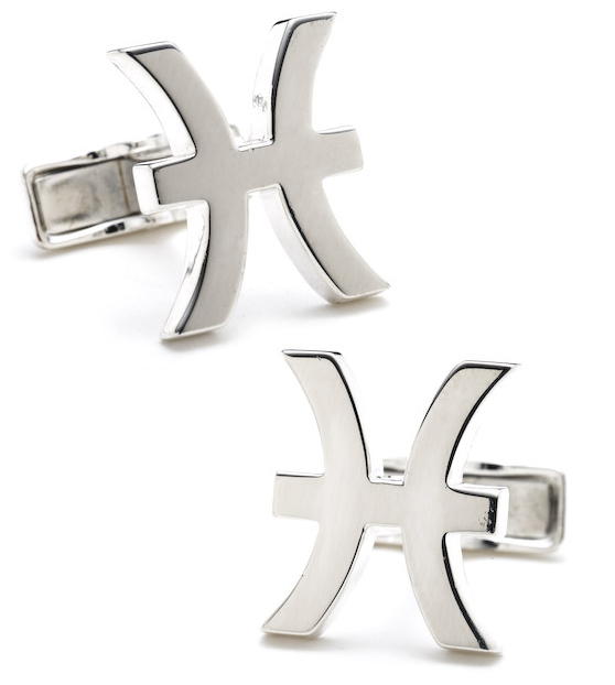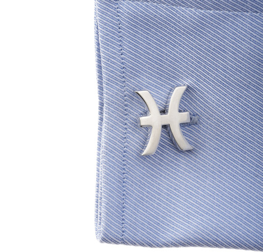 Cufflinks featuring the zodiac symbol from astrology for the Pisces, or fish. The virtues of the Pisces include sensitivity, psychic power, altruism. Pisces is the symbol for birth dates between February 20 - March 20.