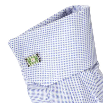 This cufflink features a miniature replica of the Pittsburgh Steelers home field for a unique way to display your team spirit. It is nickel-plated with enamel. Everyone knows Pittsburgh Steelers fans are a little more classy than those other teams. Show it off with these Pittsburgh Steelers nickel plated, enamel cufflinks. Bring a little character to that old suit, and impress your coworkers, clients, and friends. Measures 3/4" by 1/2" . Officially licensed by the NFL. Take the home field advantage wherever you go. Replica Heinz Field turf detailed down to the end zones and yard line markers.