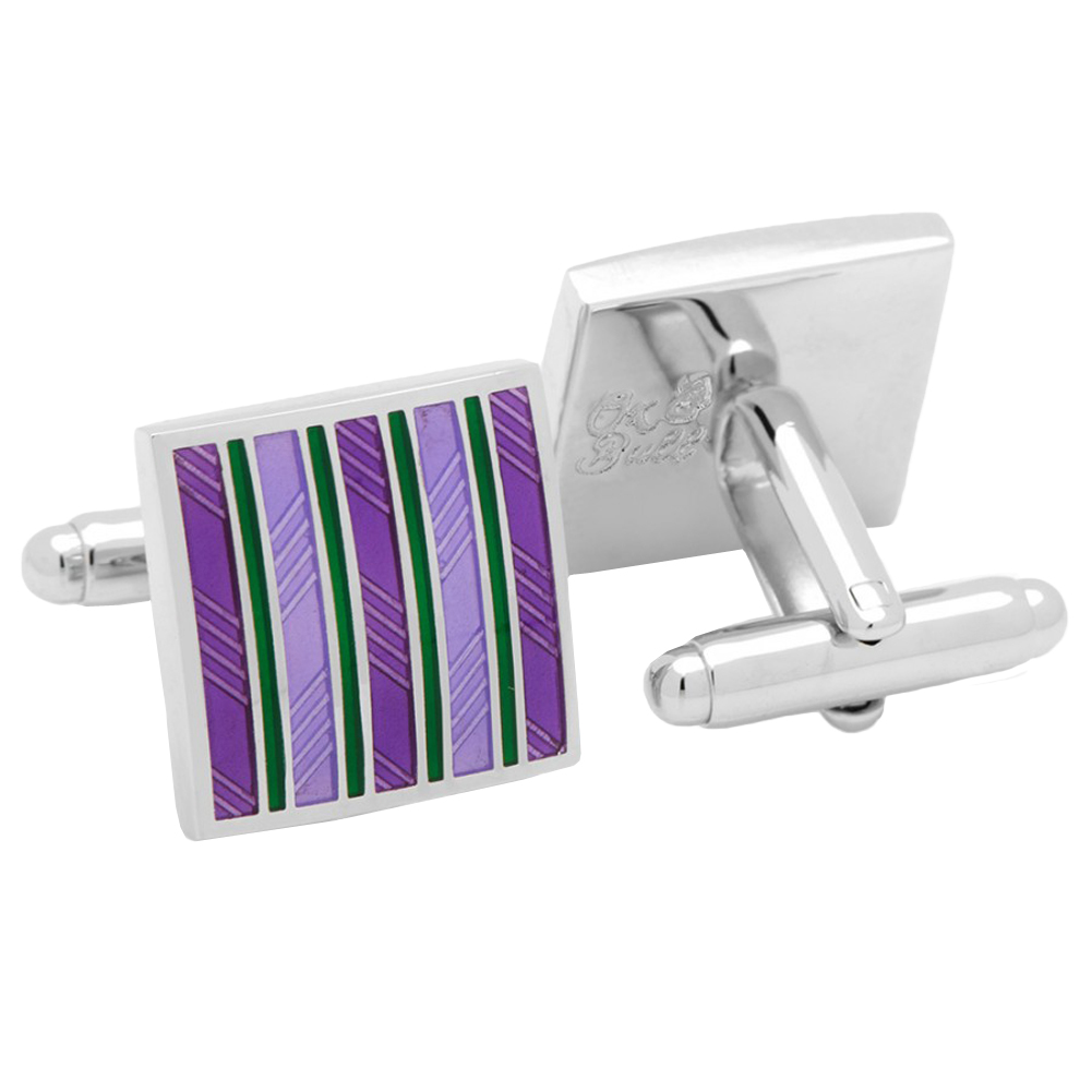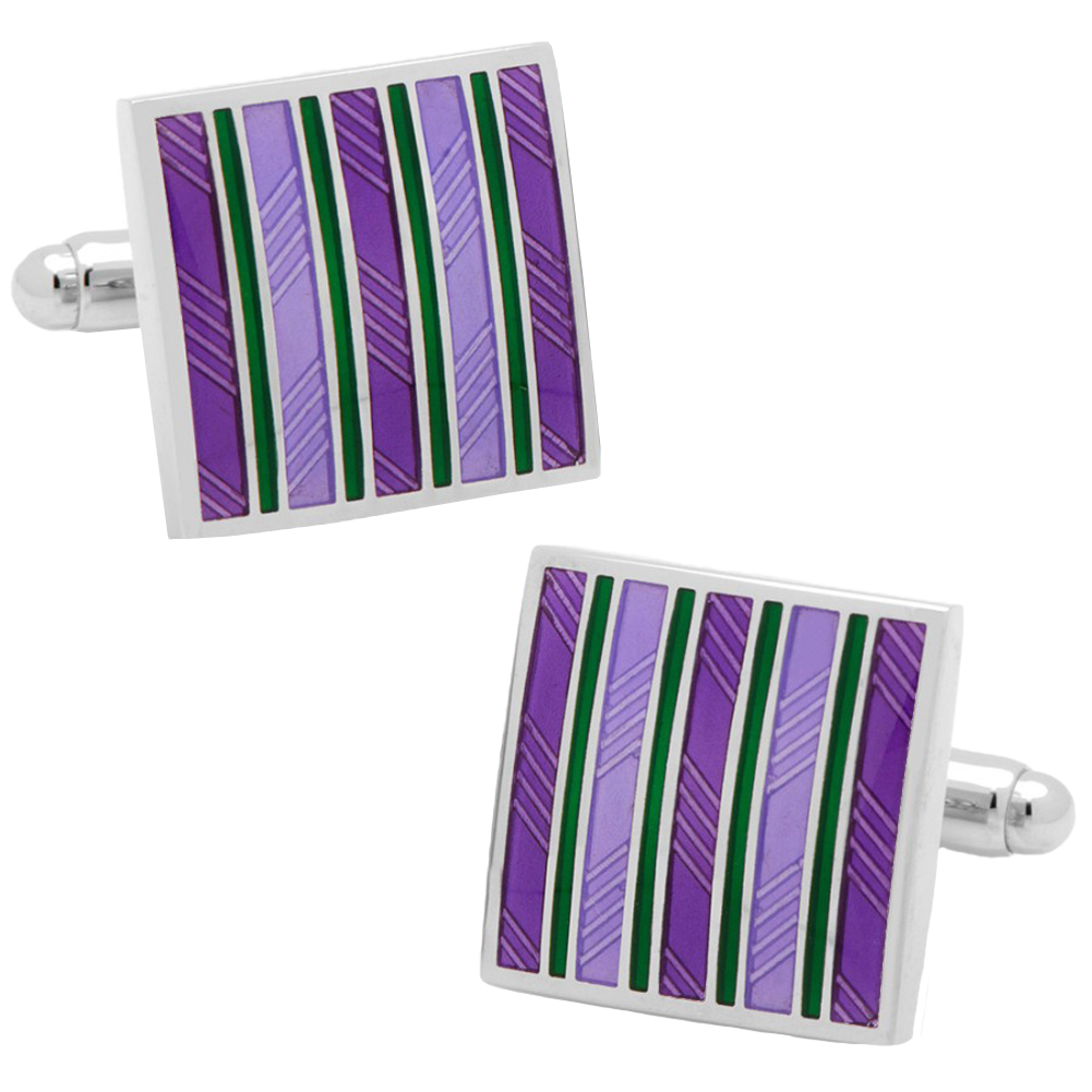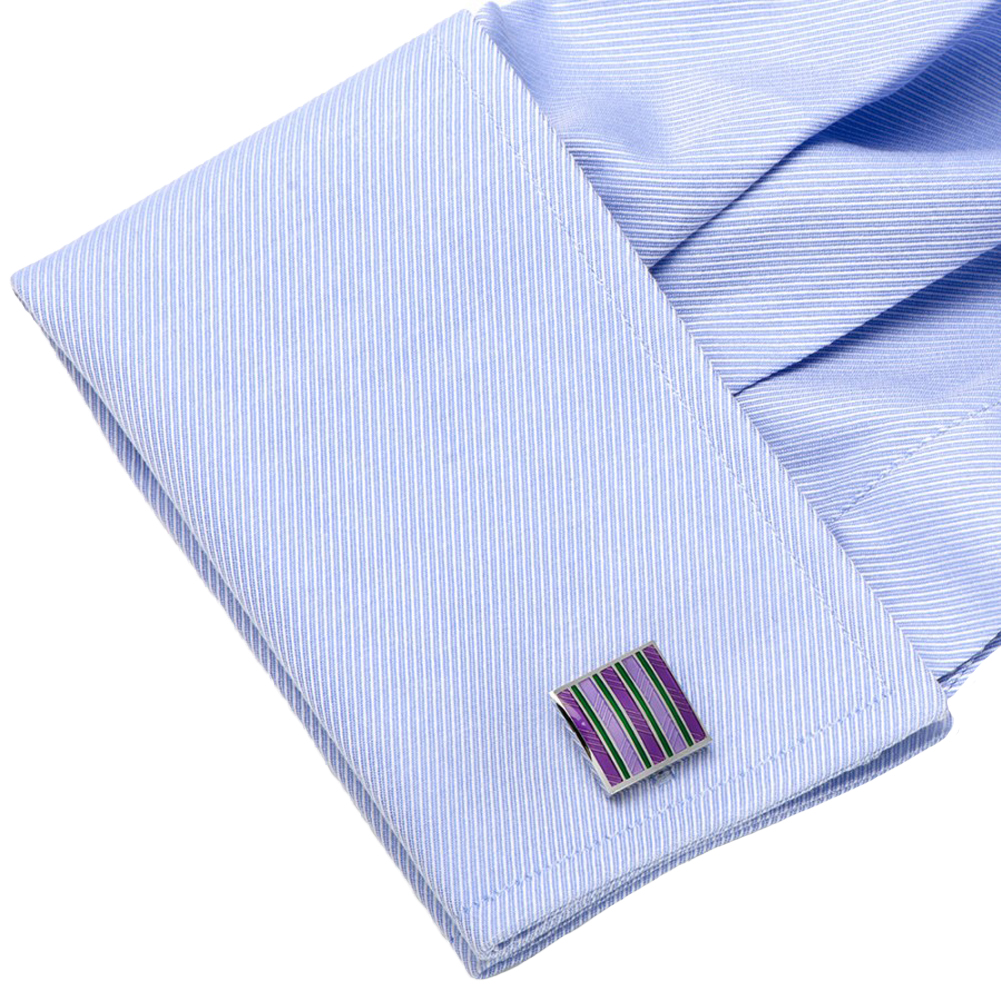 Purple and Green Striped Square Cufflinks