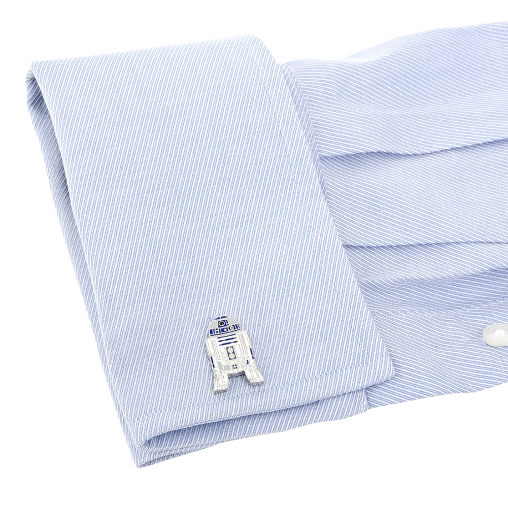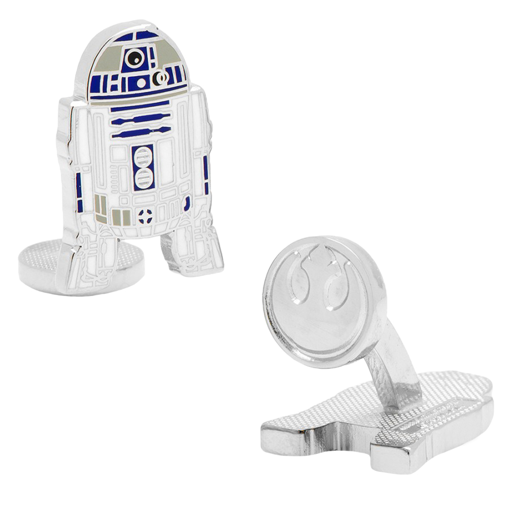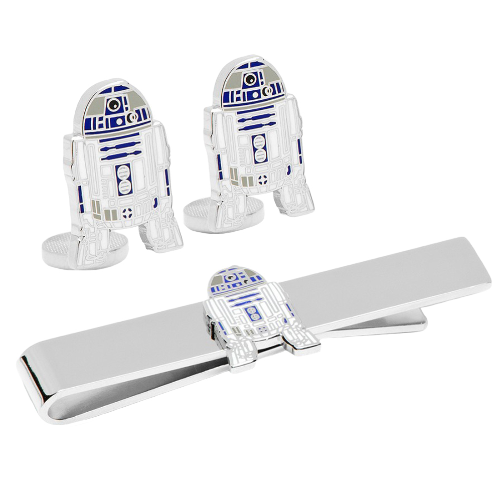 The bravest droid in the galaxy, and possibly the most recognizable. Celebrate everything you love about R2D2 with this matching set of plated metal and enamel cufflinks, featuring his likeness in perfect miniature. Officially licensed by Lucasfilm LTD. Gift set includes one pair of cufflinks and one tie bar Silver tone plated base metal with enamel Cufflinks feature fixed logo backing Officially licensed by Lucasfilm LTD Comes in a branded Star Wars gift box
