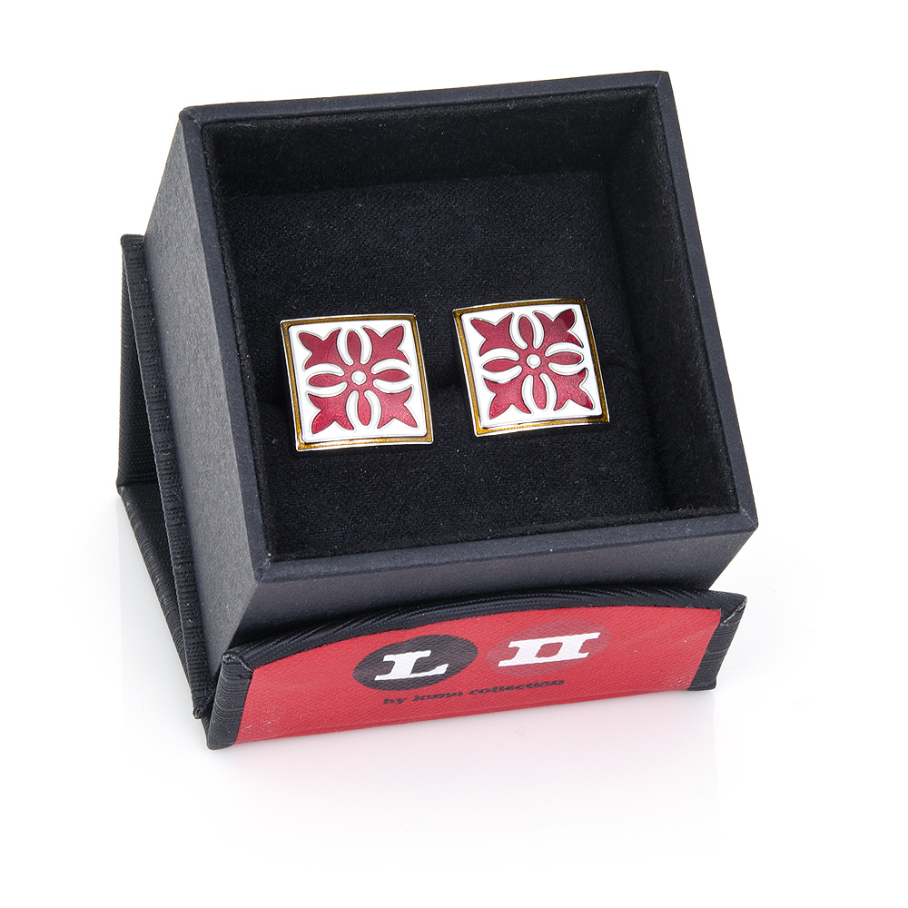 Inspired by the rise of Neo-Gothic art movement of the early 20th century with its use of stylistic and dynamic elements, cufflinks offer bold red enamel detail while maintaining a sophisticated demeanor. Gothic Medallion Cufflinks set in sterling silver. From the LOMA cufflinks collection. - Approximately 3/4" x 3/4" - Sterling Silver - Flip back closure