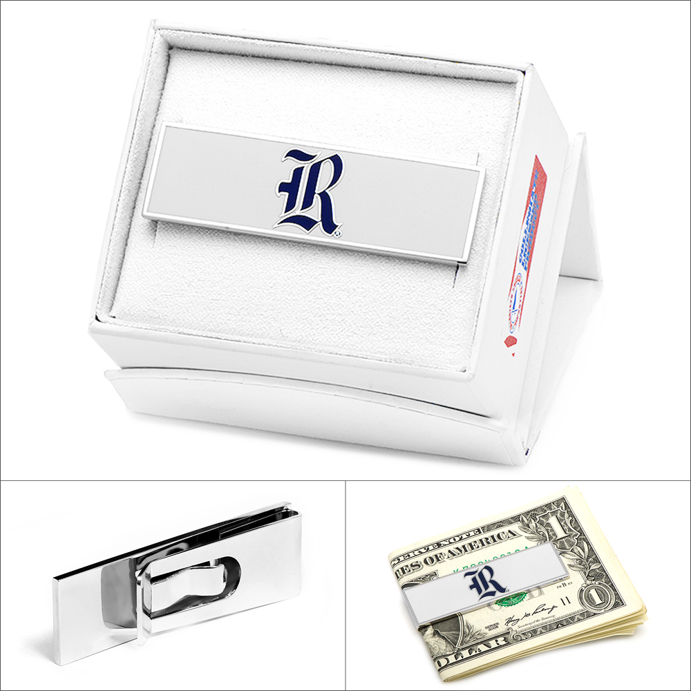 Carry Your Team Passion Wherever You Go With The Officially Licensed Rice University Money Clip. Approximately 2 3/8" X 3/4". Silver plated and enamel. 27 gram weight, 40% more than others. Double grip money security backing. Officially licensed by NCAA.