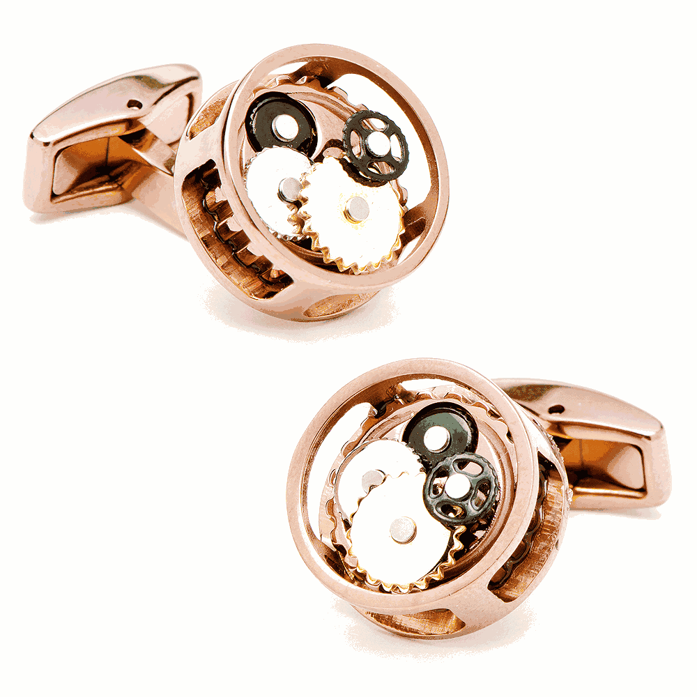 - Stainless Steel Rose Gold Kinetic Watch Movement Cufflinks