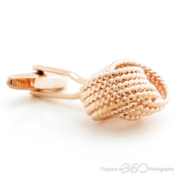 These Rose Gold Timeless Knot Cufflinks consist of a torpedo knot design and a bullet back closure. Perfect for all stylish, handsome fellas who want to dress to impress this season! These highly polished rhodium plated cufflinks feature an interlocking knot comprised of three rope-effect strands. A standard staple accessory for your cufflink collection.