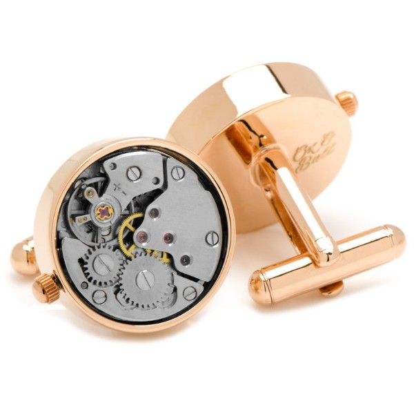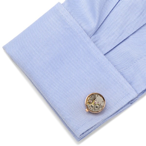 Approximately 3/4" in diameter. Rose Gold plated base metal. Vintage wind-up watch movements. Due to the vintage nature of this item, watch movements may not function.
