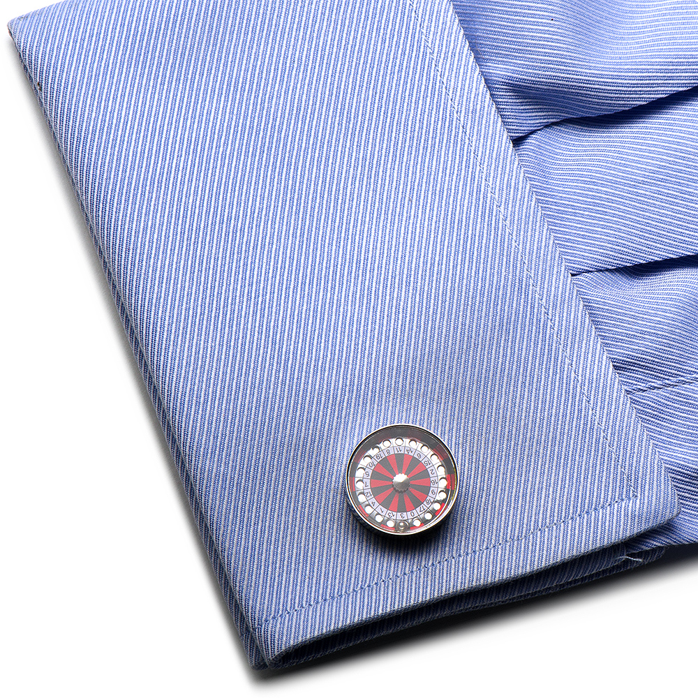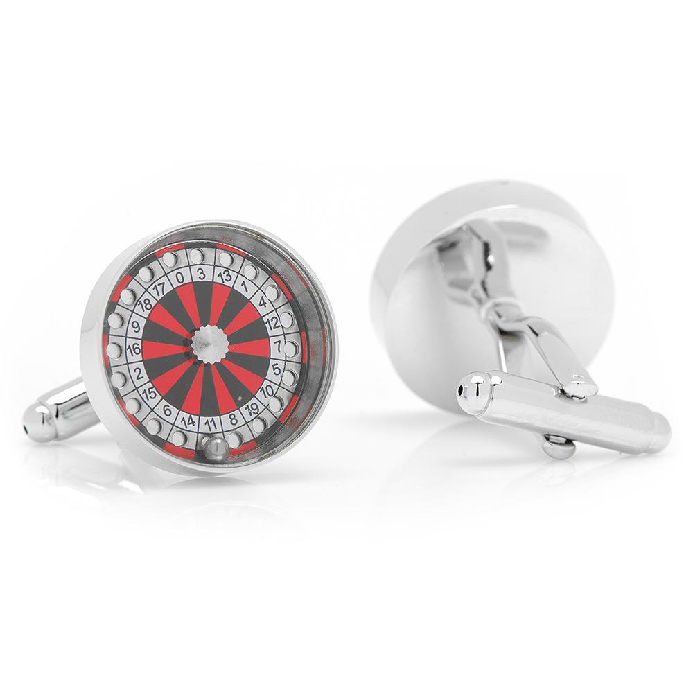 A fabulous gift for the gaming enthusiast, these cufflinks are set in silver frame and can be spun with the ball actually rolling to a number. Present this as a groomsmen gift or usher gift, perfect for weddings. Approximately 3/4" in diameter. Bullet back closure.