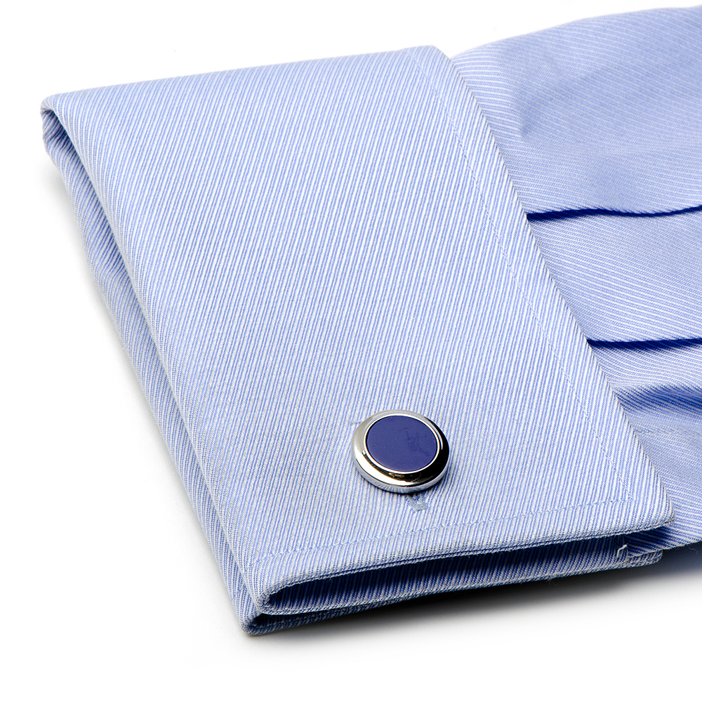 These exquisite and unique cufflinks are Silver plated with lapis. Approximately 5/8" in diameter with Bullet back closure. Cufflinks by Ox and Bull Trading Co.