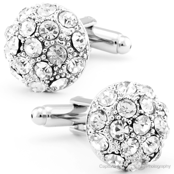 It is Round Diamond CZ Cuff Links. The vital in "bling" fashion. You can play with the big boys with a pair of round diamond CZ cuff links. Large in size as well as in “ice" appeal. Each CZ stone is gently placed by hand on a sliver mount. Polished to perfection. It is perfectly stunning. Size: 9/16". Presentation box is included.