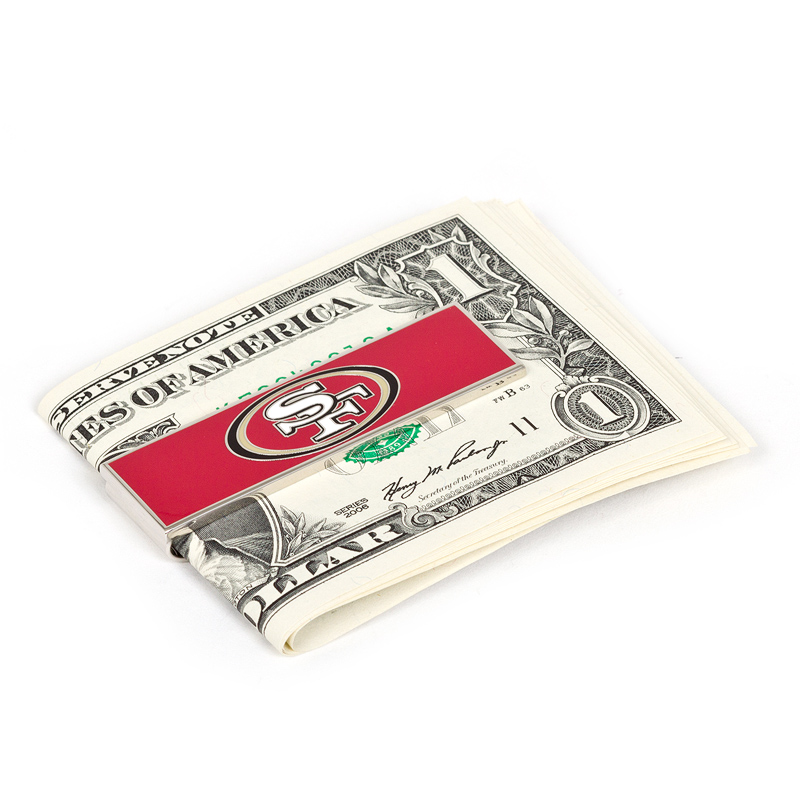 It is San Francisco 49er's Money Clip. Just carry your team passion wherever you go with the officially licensed San Francisco 49ers NFL team money clip. Boasting a heavy-duty forged 27 gram weight construction and rhodium plating, our team money clips are certain to make a loyal companion for years to come. Each team money clip is delivered wonderfully presented in the official NFL gift box complete with turf interior.