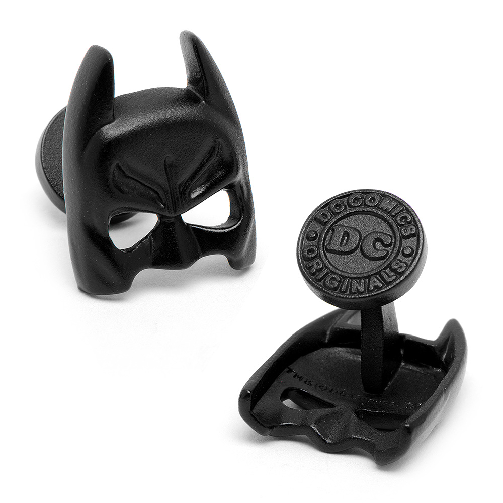 Approximately 7/8" x 5/8". Satin black plated. Fixed logo back closure, curved post. Officially licensed by DC Comics.