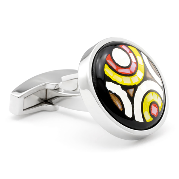 The design of the Scarlet Sienna Hued Mosaic Button Cufflinks is a familiar favorite with the quality craftsmanship expected from fine jewelry. However, the deep colors surrounding the suble shimmer of Mother of Pearl tiles emit a native aura that seems inspired by tribal art. The deep red highlights and rich Sienna accenting create a unique detour from the solidarity of similarly-styled cufflinks. The glossy mosaic inlaid façade is swaddled in an ample silvertone setting that transitions to the backing and into the secure fixture. The look is modern yet pays homage to age-old style and artistry that makes this a clever addition to any cufflink valet!