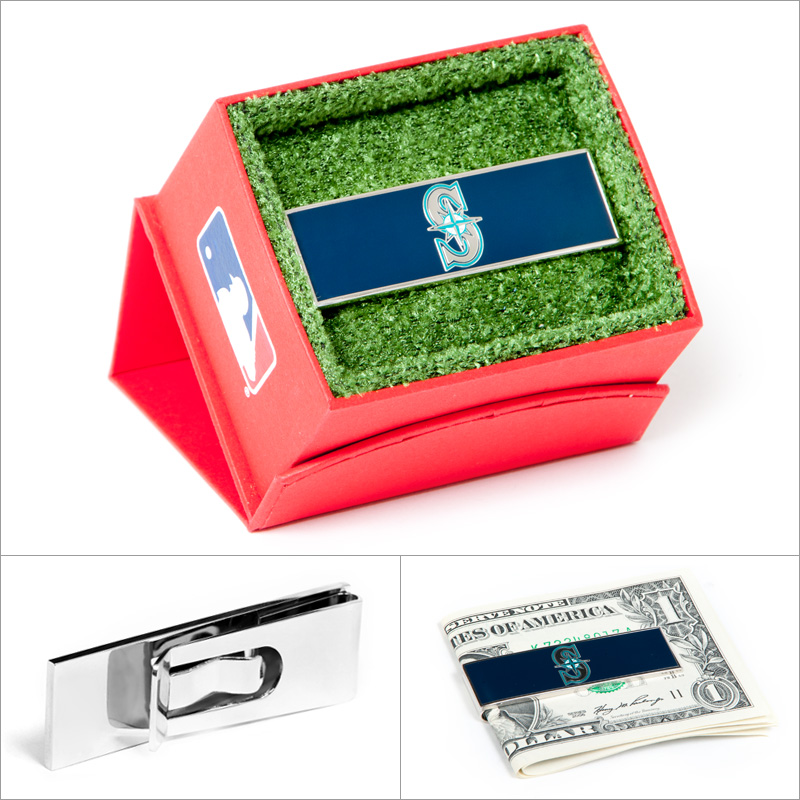 This is a stunning new Stainless Steel MLB Seattle Mariners Money Clip. The official logo of Major League Baseball's Seattle Mariners (Cuff Link). It is a great gift for yourself or a loved one and makes the perfect addition to any jewelry collection.