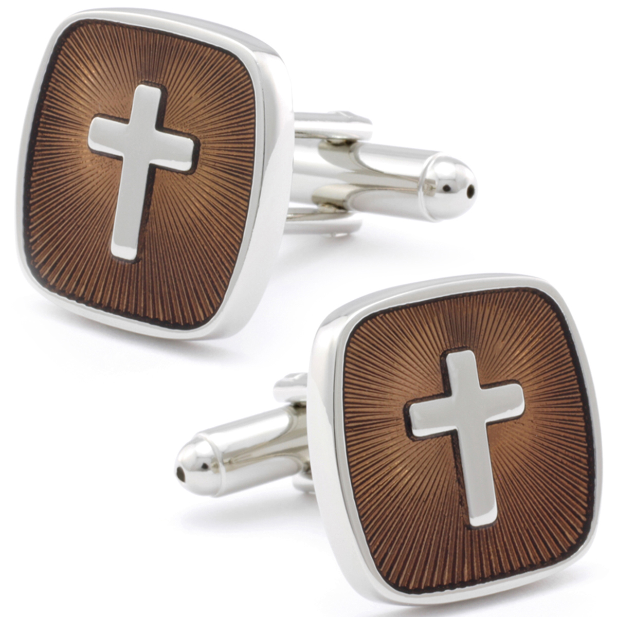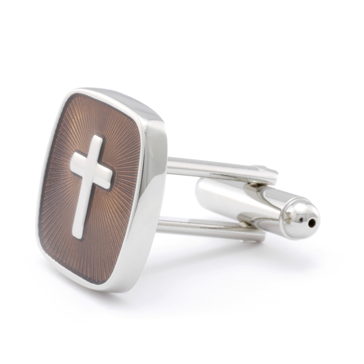 The Cross Cufflinks are fantastic way to modestly Show of your Faith. Show off your Christian pride with these Cross Cufflinks. They are the ideal gift for your hip youth consulor, Youth Pastor, and your best Christian buddy. They feature a beautiful silver rhodium square and cross set against a shimmering, translucent orange background.
