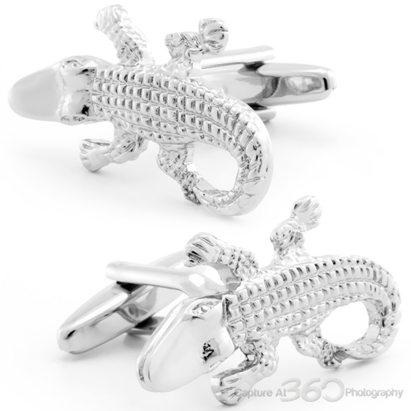 Take these Silver Crocodile Cufflinks with you on all your Amazonian adventures! Made from highly-polished, electroplated rhodium metal, these fierce sea and land creatures will look superb on any shirt cuff. Show off your love of the wild and all things exotic.