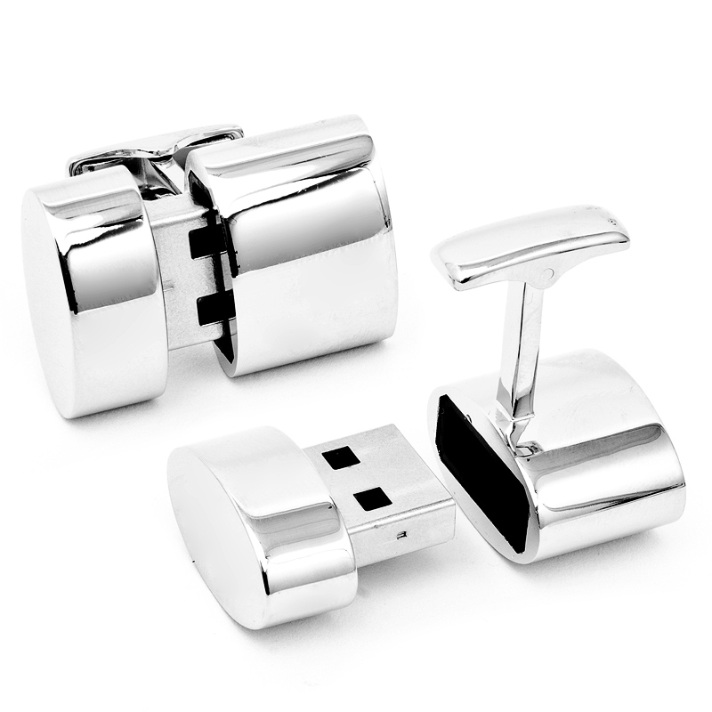 The perfect pair of cufflinks for work. 4GB USB Flash Drive Cufflinks (2 GB each, total 4 GB) are not only engravable, but feature functional USB drives making it possible for you to keep all of your must-have presentations and important documents with you wherever you go. Never be without functional fashion again. You're welcome. USB Drive Cufflinks are also available in gunmetal as well as antique silver and gold woven finishes. Please note that all engraving will be as entered. We will not re-order the initials input. Cufflinks by Ravi Ratan.