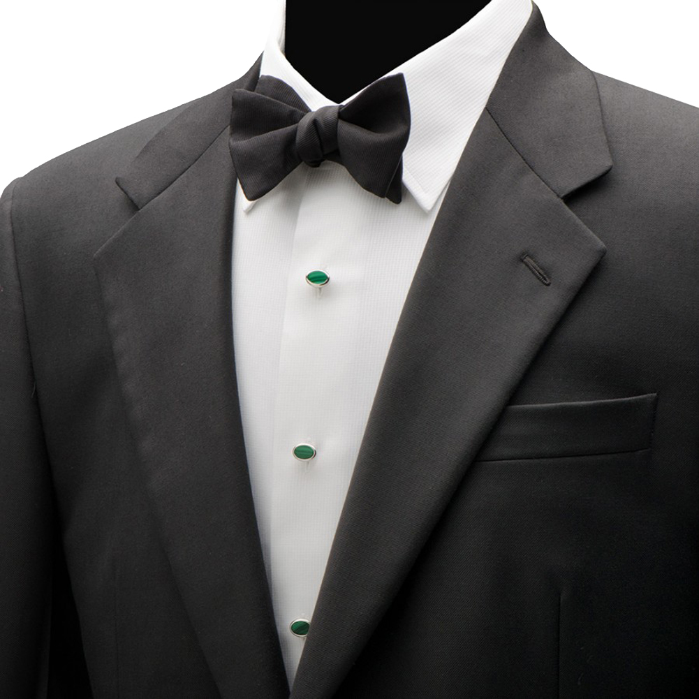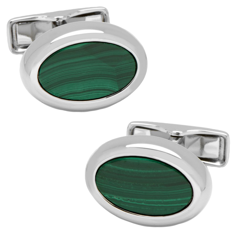 Cufflinks are approximately 3/4" x 5/8". Studs are approximately 1/2" x 3/8". Palladium base metal and Malachite. Cufflinks have Engravable whale backing