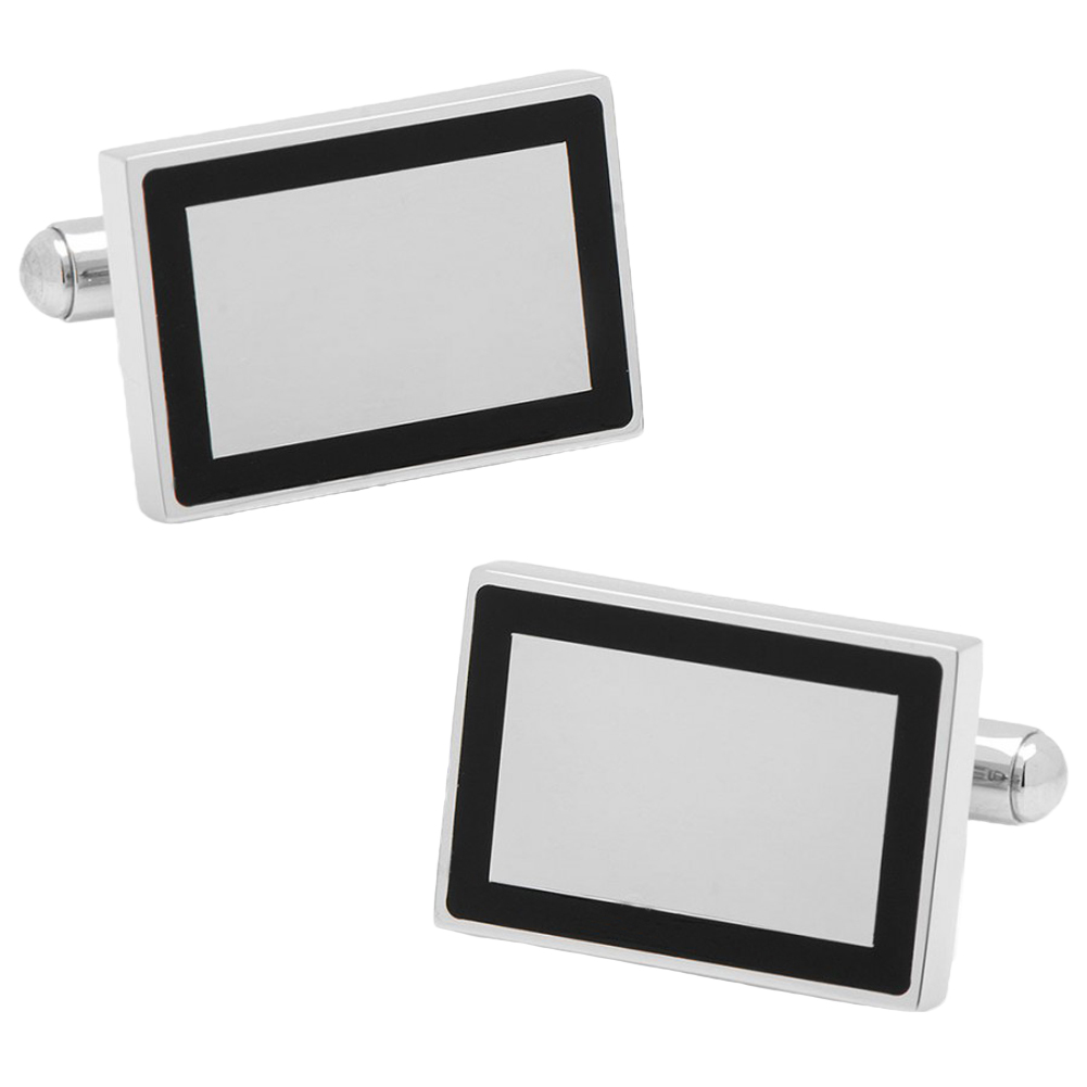 Approximately 1/2" x 3/4". Stainless steel with black enamel border detail. Bullet back closure
