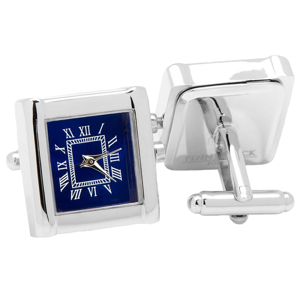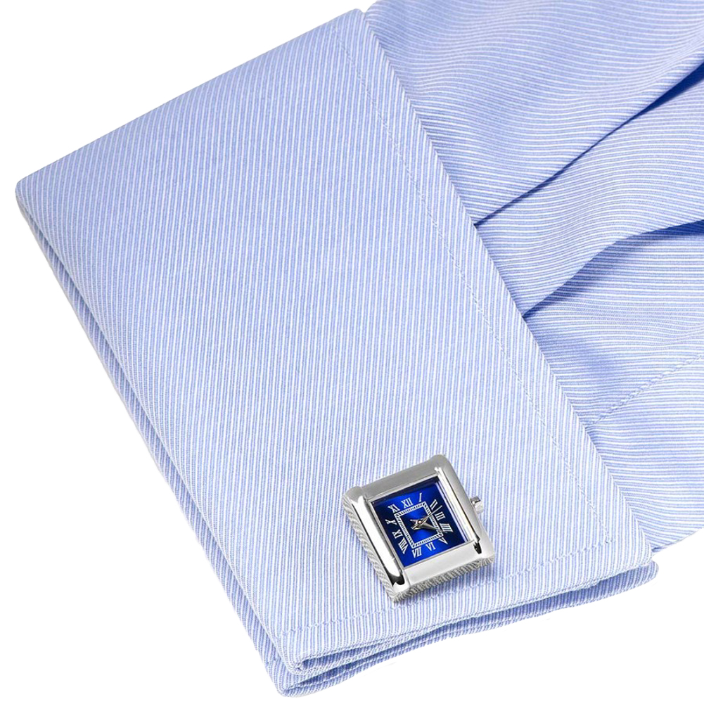 Approximately 7/8" x 7/8". Stainless steel with functional watch. Bullet back closure