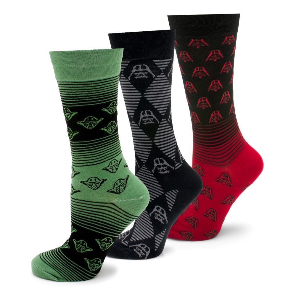 Each pack contains a green Yoda pair, a red Darth Vader pair, and a black Darth Vader pair, all with striped details and comfortable heel and toe reinforcements. Our socks offer both comfort and breathability for all day wear thanks to the soft cotton blend.