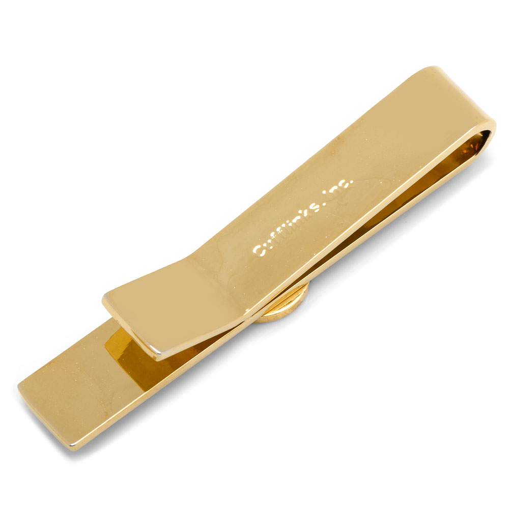 Approximately 2 3/8" x 3/4". Gold plated with enamel. Sliding tie bar.