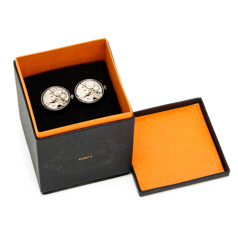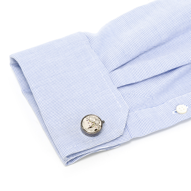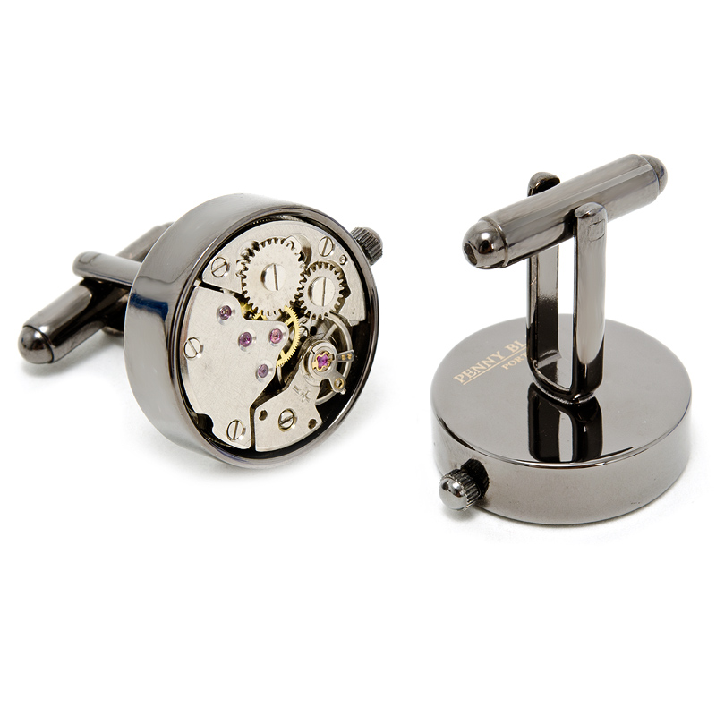 These Gunmetal Watch Movement Cufflinks will have all eyes watching you. With their authentic watch movements and gunmetal plated base, these Swiss Watch Cuff links make a striking statement. These cufflink Featuring functional gears, levers and jewels, Steampunk Gunmetal Watch Movement Cufflinks allow you to watch (get it, watch?) engineering at its finest. Cufflinks by Penny Black 40.
