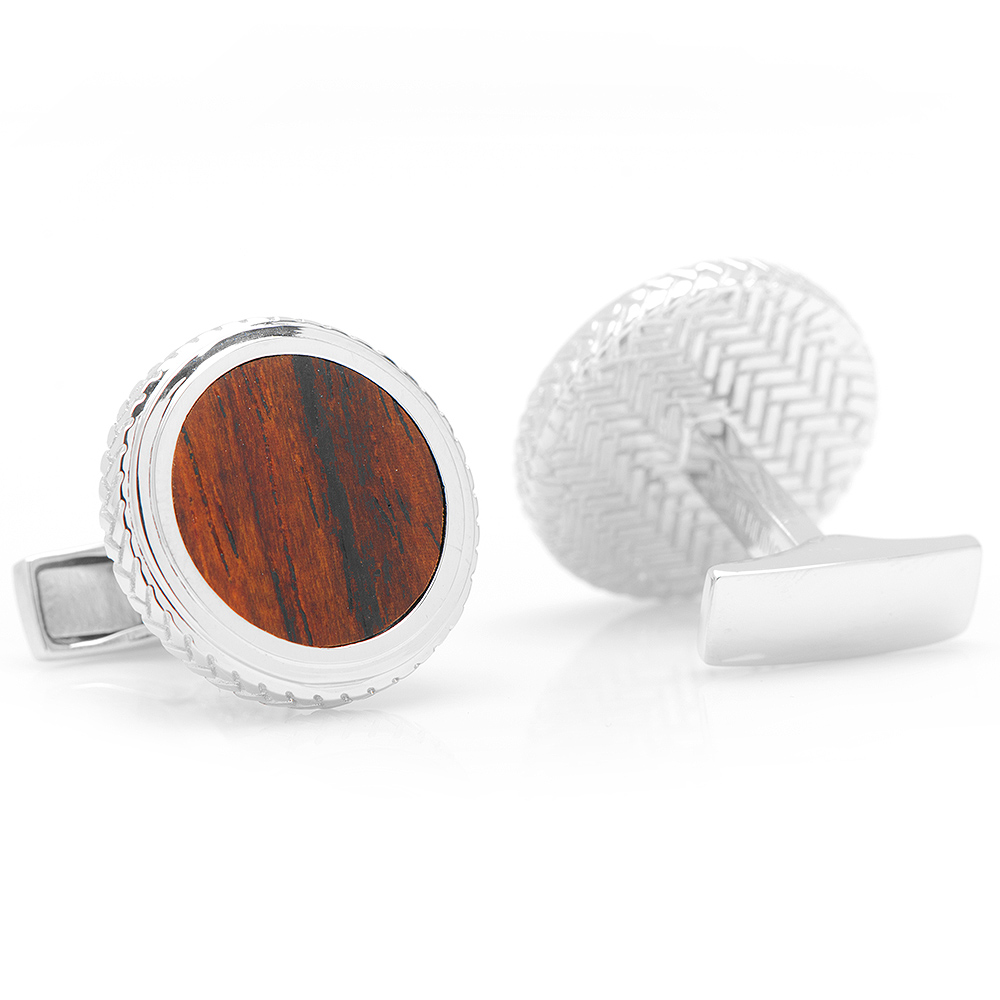 Sterling Silver And Cocobolo wood cufflinks are Engravable whale back closure and have 23g(.8oz) Total Pair Weight. Design by Ravi Ratan.Presented in a stylish branded black gift box.
