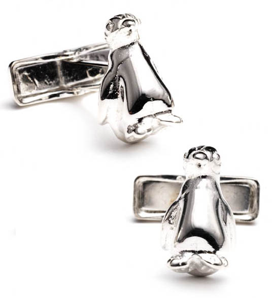 Mens formal wear is often referred to as a penguin suit. Formal, elegant penguin cufflinks in sterling silver are the perfect tuxedo companion.
